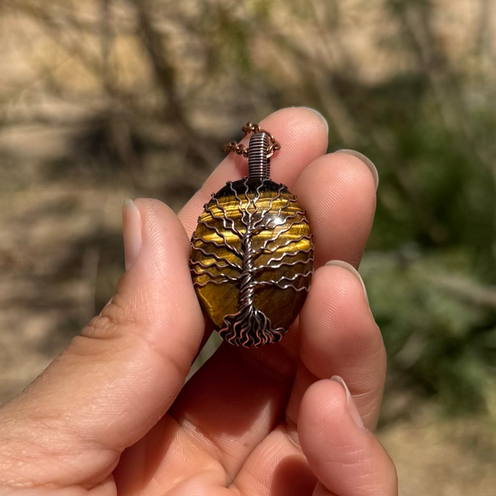 Tigers Eye wrapped in an antiqued copper tree design π³π€