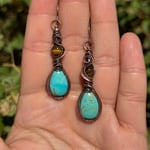 Turquoise from Arizona (bottom) and Tigers Eye (top) earrings wrapped in antiqued copper π€π©΅