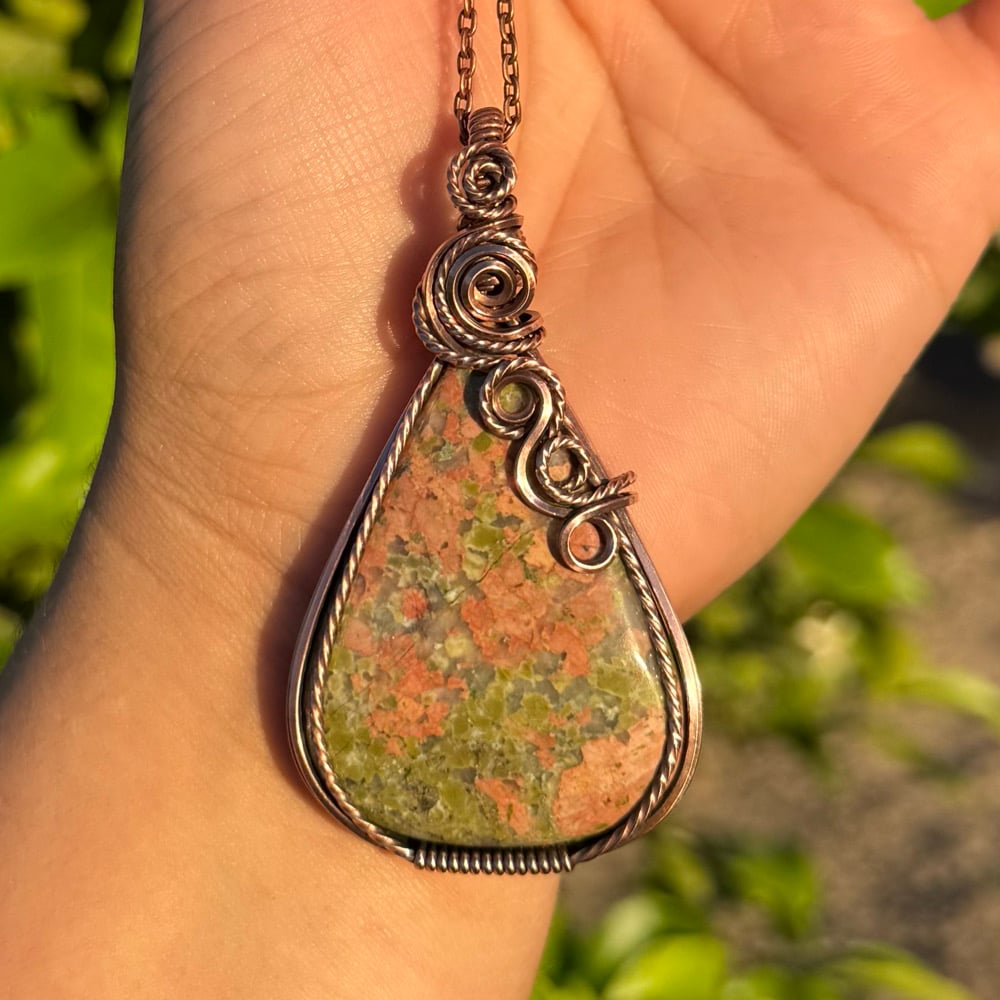 Large Unakite pendant wrapped in antiqued copper ππ©·